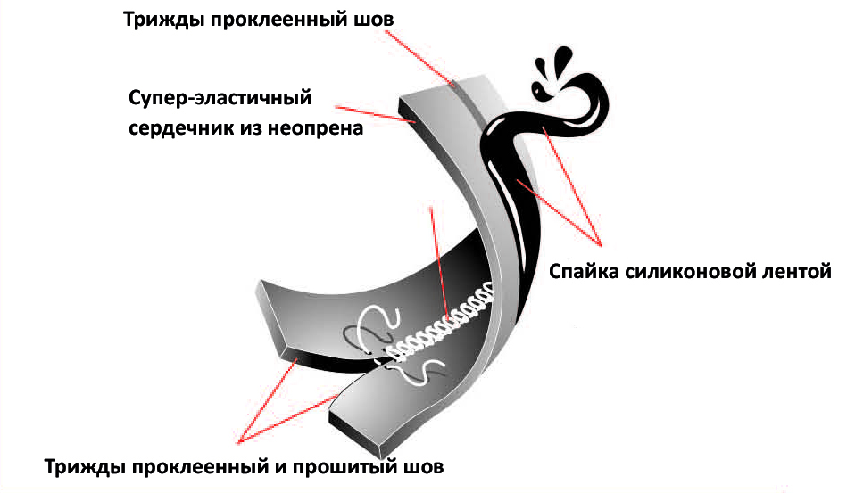 O'Neill Exterior Fluid Seam Weld - Спайка силиконовой лентой трижды проклеенного и прошитого шва является революционной конструкцией с использованием высококачественного мягкого уретана на основе силикона, нанесённого в жидкой форме на внешнюю часть GBS шва. Такая спайка шва не будет натирать и полностью блокирует попадание воды в гидрокостюм.